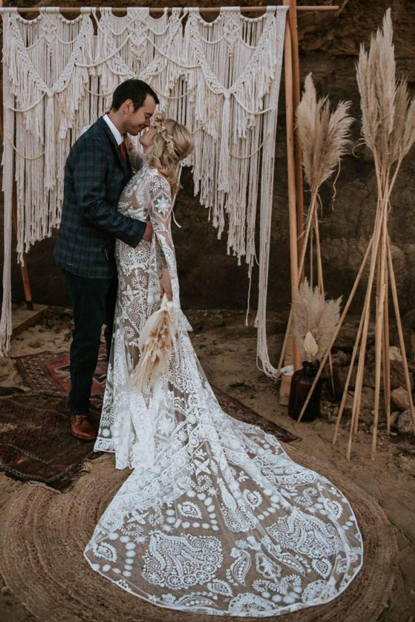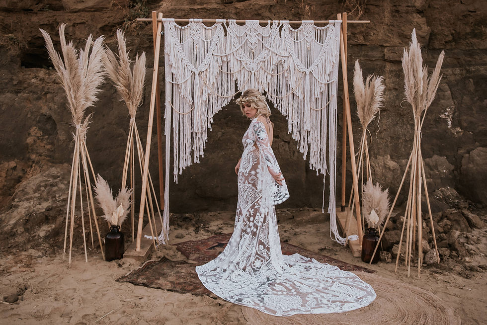Photographer @chloeellisphotography Videographer @chrisharveyvisuals Props @arrayweddingandeventhire Styling @smokeandwildwood Macrame @lovelylittlelotofknots Flowers @sirrahflowers Dress @whitereflectionsbridal & @ruedeseinebridal Suit @slatermenswear HMAU @stephaniealexandrabridal